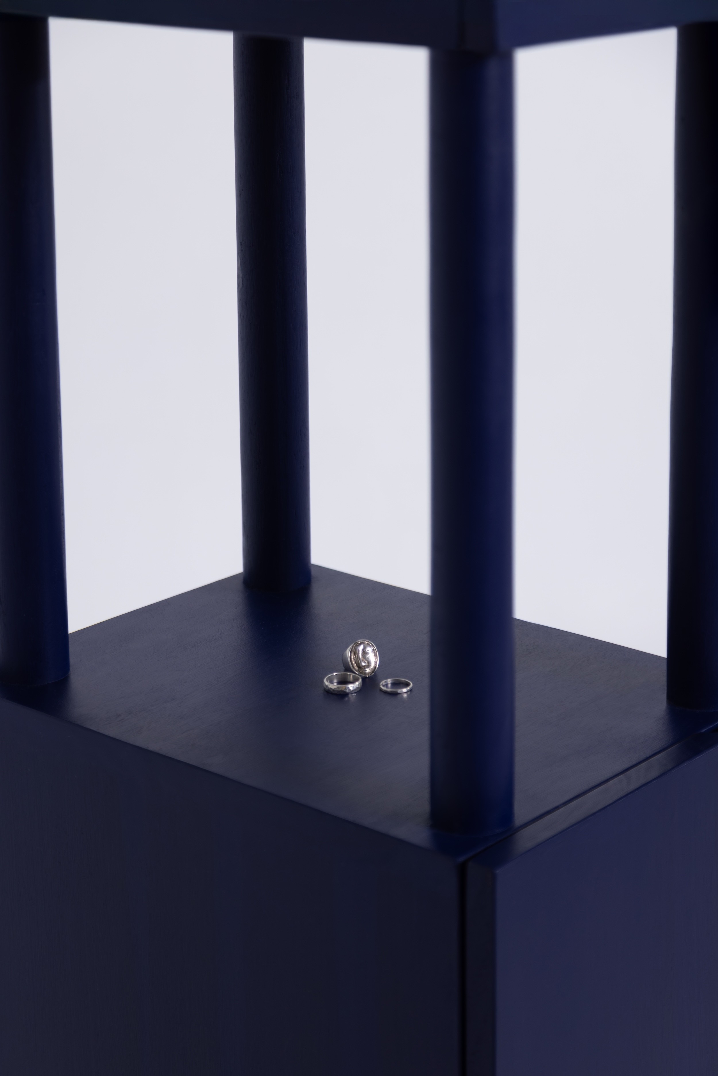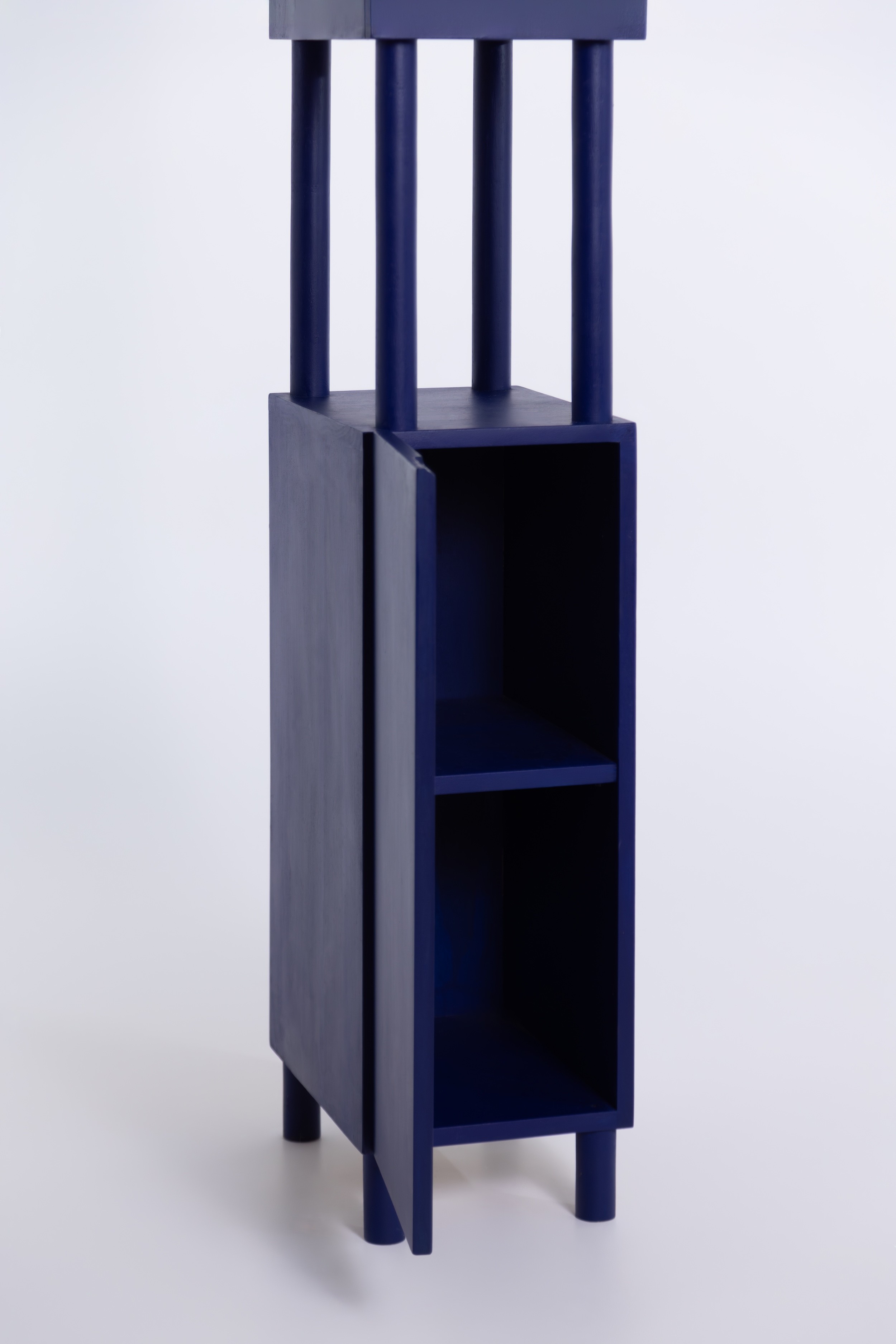 This cabinet breaks its solid mass with a thoughtful central opening, transforming a heavy silhouette into a graceful stage for curated display.